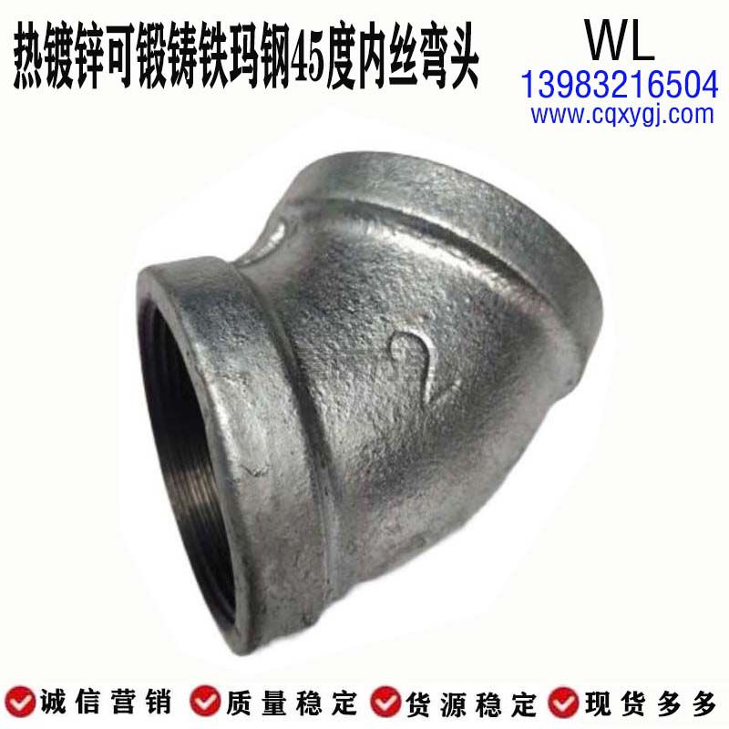 45度內(nèi)絲彎頭 瑪鋼鑄造鍍鋅
